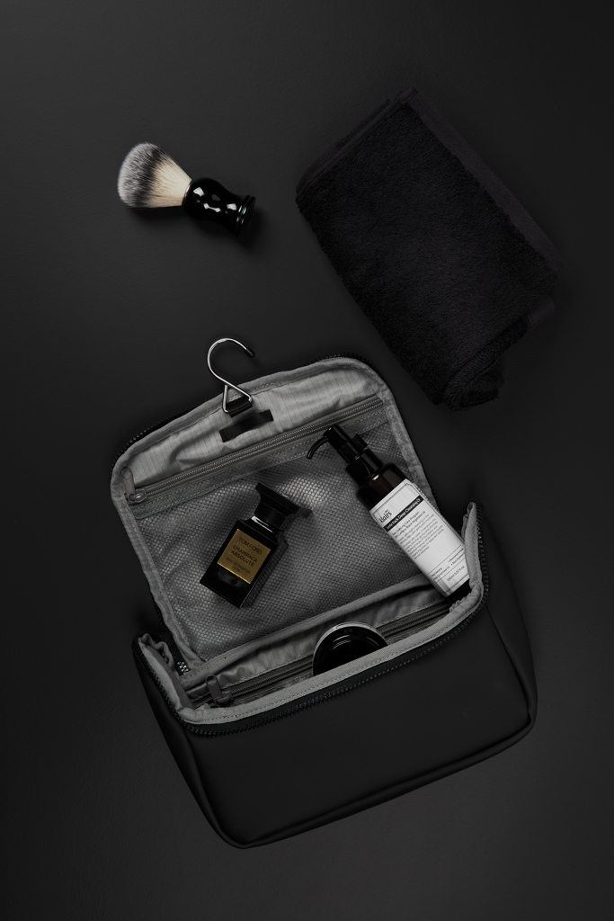 Cestovní toaletní taška vyrobená z vodou repelentní nubukové PU kůže, která je zároveň stylová i praktická. Materiál je velmi snadno umyvatelný. Vnitřní část je přizpůsobena pro maximální organizaci všech toaletních potřeb. Disponuje několika kapsami a háčkem na zavěšení.