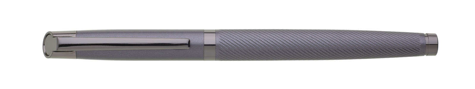 Elegantní kovový roller Genero s šedým, matným povrchem. Laser na propisce je šedo-hnědý. Kolekce Gabrielis.