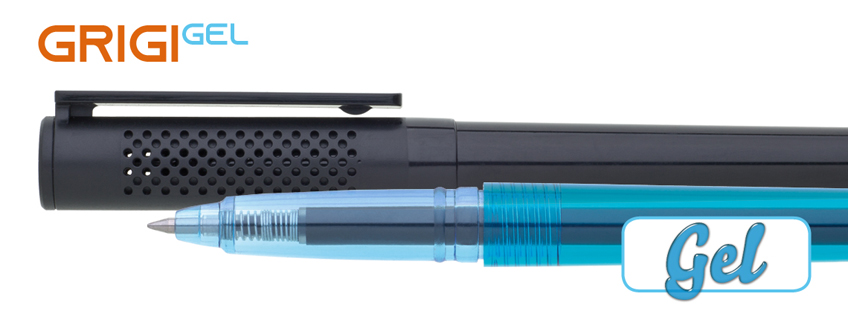 Gelová propiska s víčkem, transparentní tělo s neprůhledným víčkem a klipem vhodným pro potisk. Gelová náplň je modře píšící, 800m.
