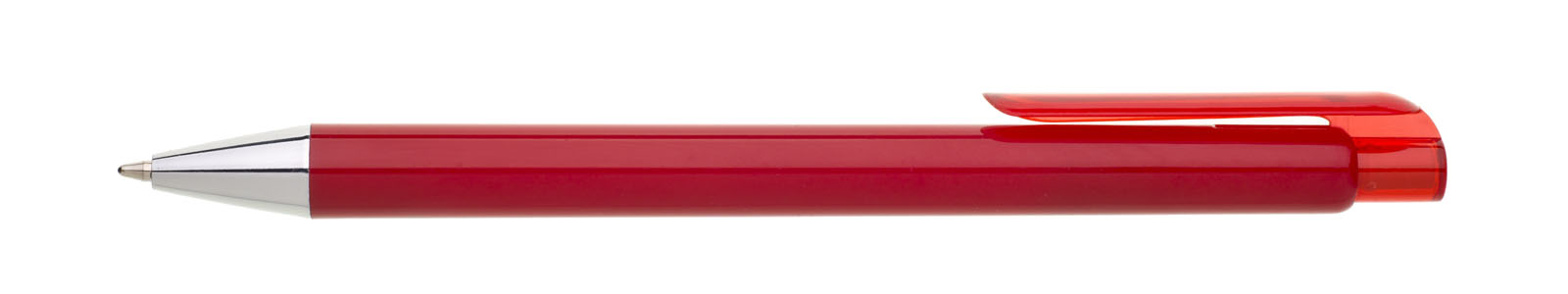 Celoplastová tužka JOXY červená s širokým transparentním klipem a pochromovanou špičkou. Náplň X20-10,6 mm modře píšící. K propisce je dodávána nová náhradní náplň, negarantujeme psaní originální náplně.