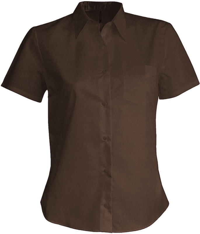Dámská košile, krátký rukáv, snadná údržba, nevystužený měkký límec, knoflíčky v barvě, 2 knoflíčky na stojáčku límce, přední a zadní záševky pro maximální komfort, 2 náhradní knoflíčky, tvarovaný spodní lem, 70% bavlna, 30% polyester, 135 g/m2.