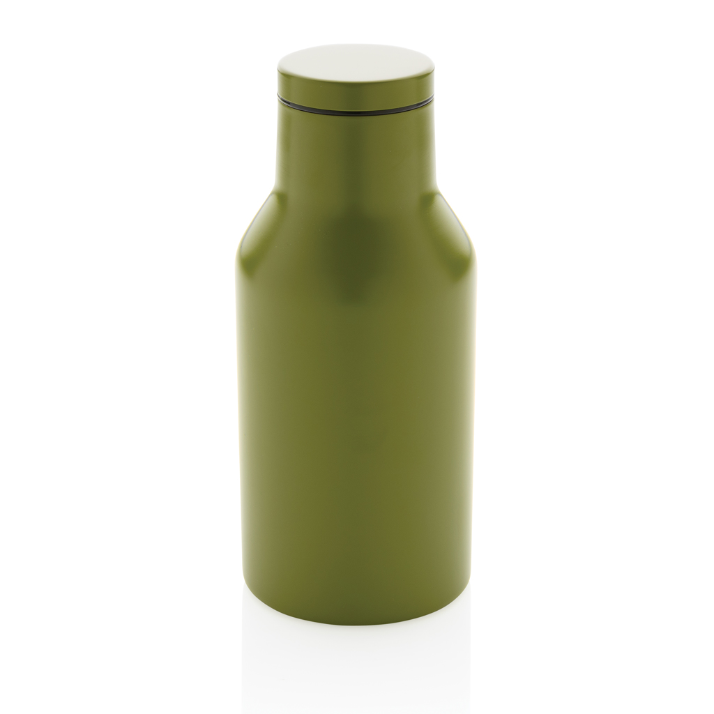 Kompaktní nepropustná termo lahev s bezpečným šroubovacím uzávěrem s širokým hrdlem pro snadné čištění a plnění. Dvoustěnná vakuová izolace uchová nápoj horký po dobu až 3h a studený až 6h. Vyrobeno z RCS recyklované nerezavějící oceli. RCS (Recycled Claim Standard) je globální standard, který umožňuje ověřit použití recyklovaného materiálu v produktu napříč celým dodavatelským řetězcem. Podíl použitého recyklovaného materiálu vzhledem k celkové váze produktu: 89 %. Bez BPA. Objem: 300 ml. Baleno v FSC kraftové krabičce.