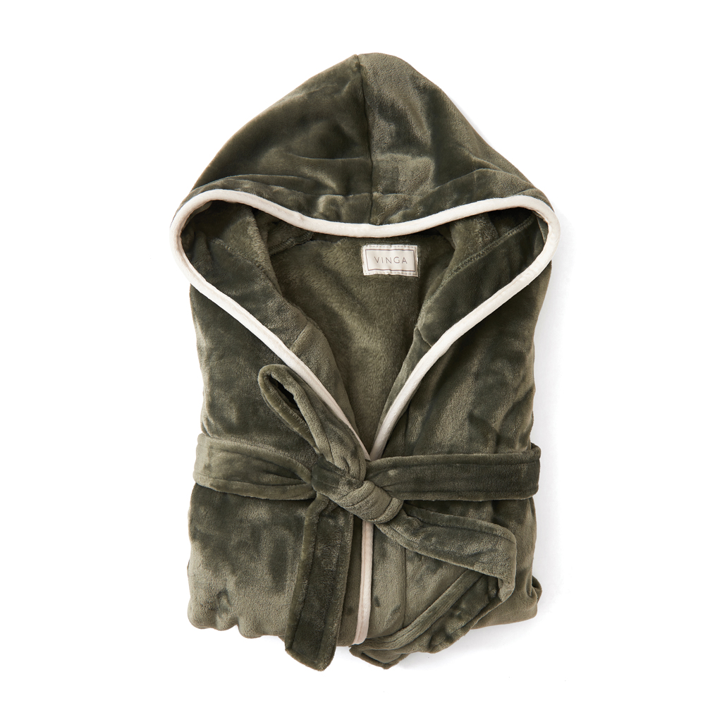 Měkký a příjemný župan z luxusního plyše s velkou kapucí a ozdobným lemováním. Dvě přední kapsy a pásek v pase. Župan je ze 70 % vyroben z recyklovaného materiálu z PET lahví. Neradi přepravujeme vzduch, a proto jsme se rozhodli tento župan vakuově zabalit a snížit naši uhlíkovou stopu. OEKO-TEX Standard 100 znamená, že materiál županu splňuje několik kritérií bezpečnosti výrobku.