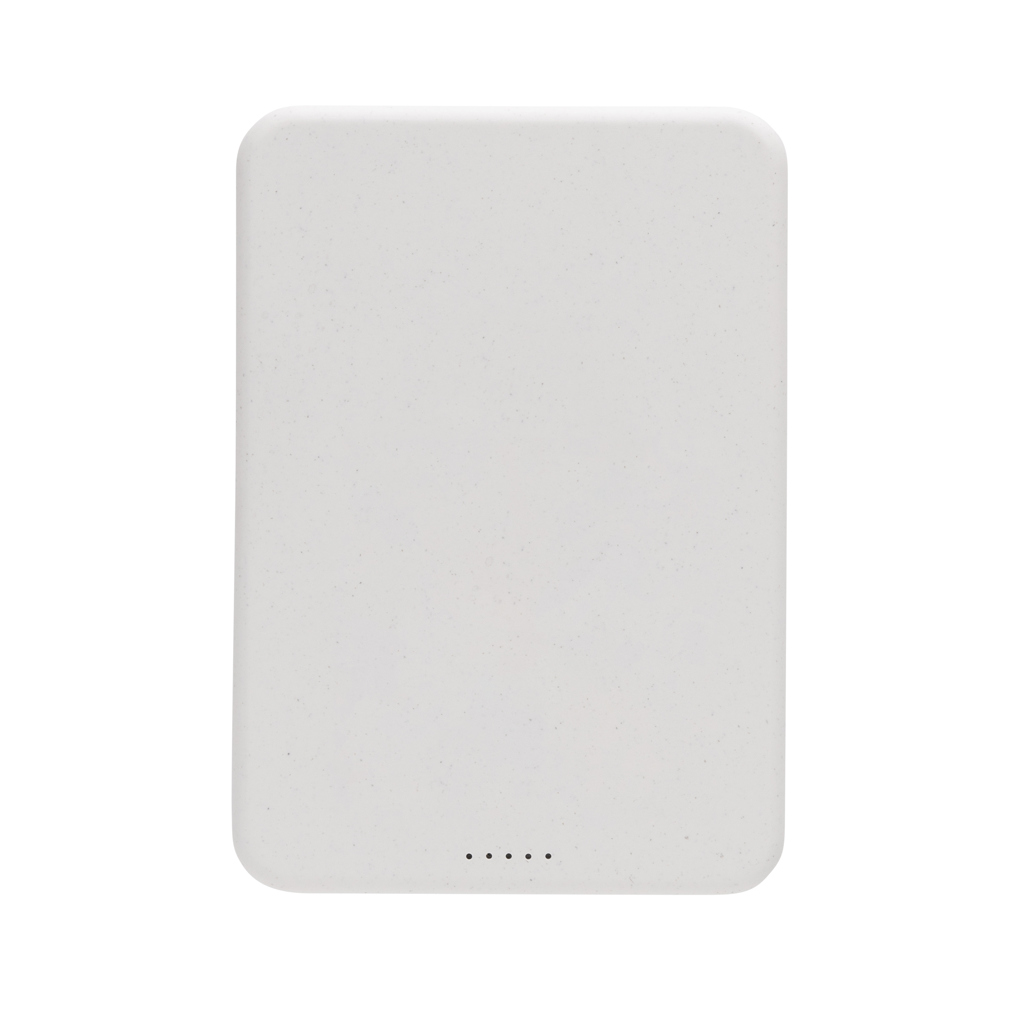 Kapesní powerbanka 5 000 mAh s magnetickým bezdrátovým nabíjením 5 W. Vyrobená z recyklovaného ABS plastu s RCS certifikací. RCS (Recycled Claim Standard) je globální standard, který umožňuje ověřit použití recyklovaného materiálu v produktu napříč celým dodavatelským řetězcem. Celkový podíl recyklátu dle váhy produktu: 20 %. Kvalitní lithium polymerová baterie řady A s kapacitou 5 000 mAh. Světelné indikátory stupně nabití. USB C vstup: 5V/2,4A. USB C výstup: 5V/2,4A, bezdrátový výstup: 5W. Včetně nabíjecího kabelu z recyklovaného TPE. Výrobek je kompletně bez PVC. Baleno v FSC kraftové dárkové krabičce.