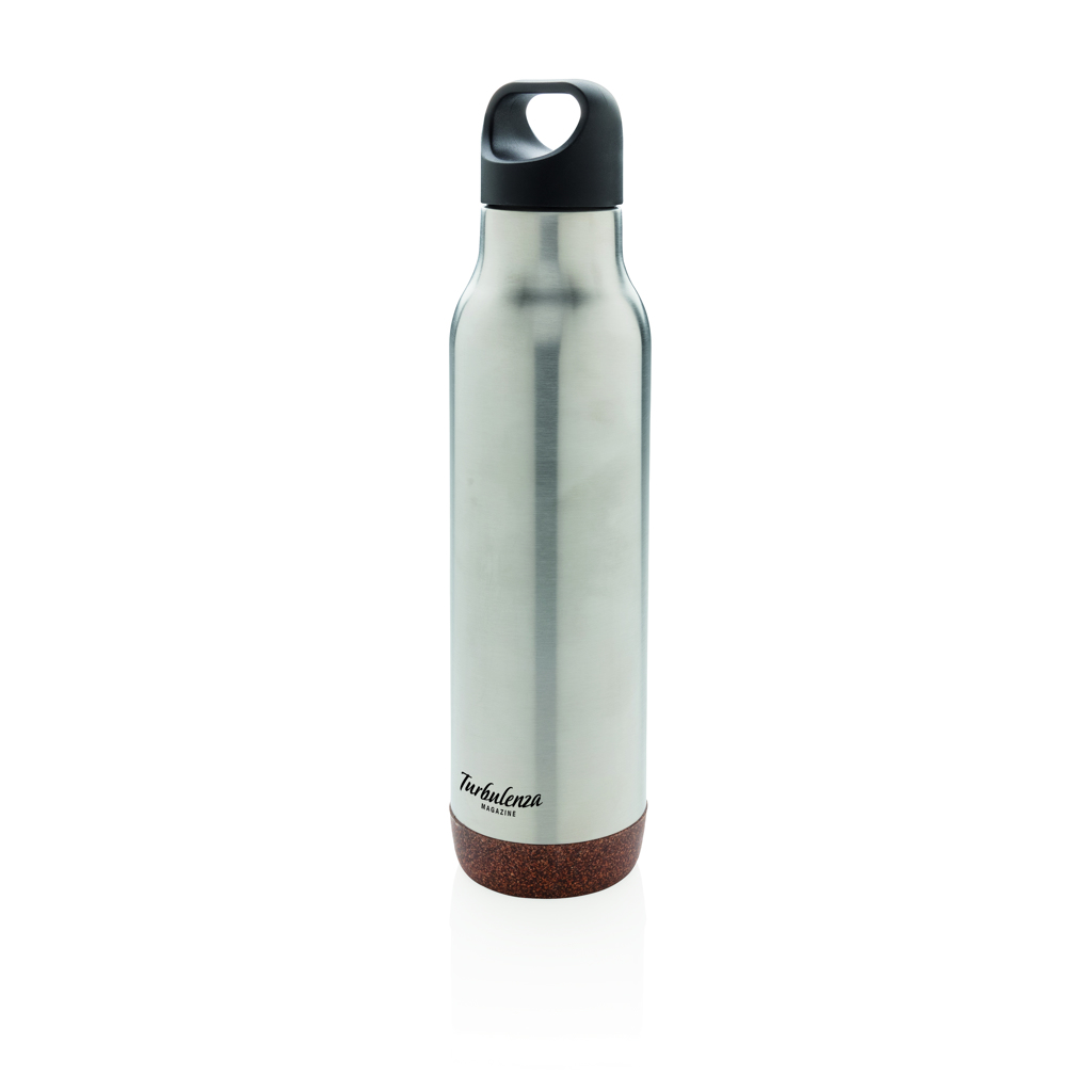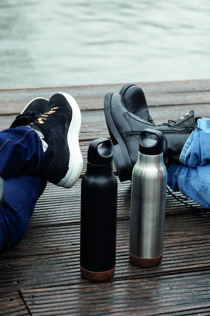 Vakuově izolovaná nepropustná termo láhev z odolné nerezavé oceli 304 SS uvnitř a 201 SS vně. Unikátní korkový detail na spodní části. Láhev udrží nápoje horké po dobu až 5h a studené až 15h. Objem: 600ml.