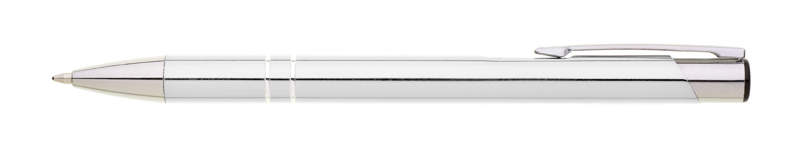 ORIN je velmi oblíbená hliníková reklamní tužka. Lesklé, stříbrné tělo se dvěma stříbrnými proužky a chromovými doplňky. Velkoobsahová modrá náplň.