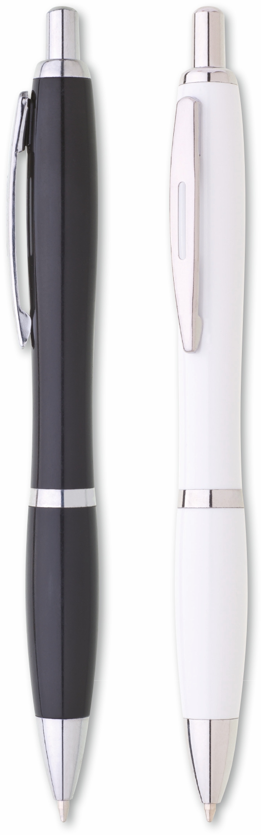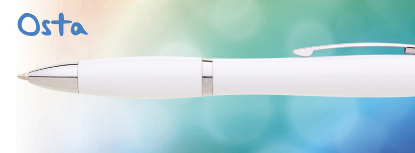 OSTA černá plastová propiska s neprůsvitným tělem a chromovými doplňky. Náplň velkoobsahová, modře píšící.