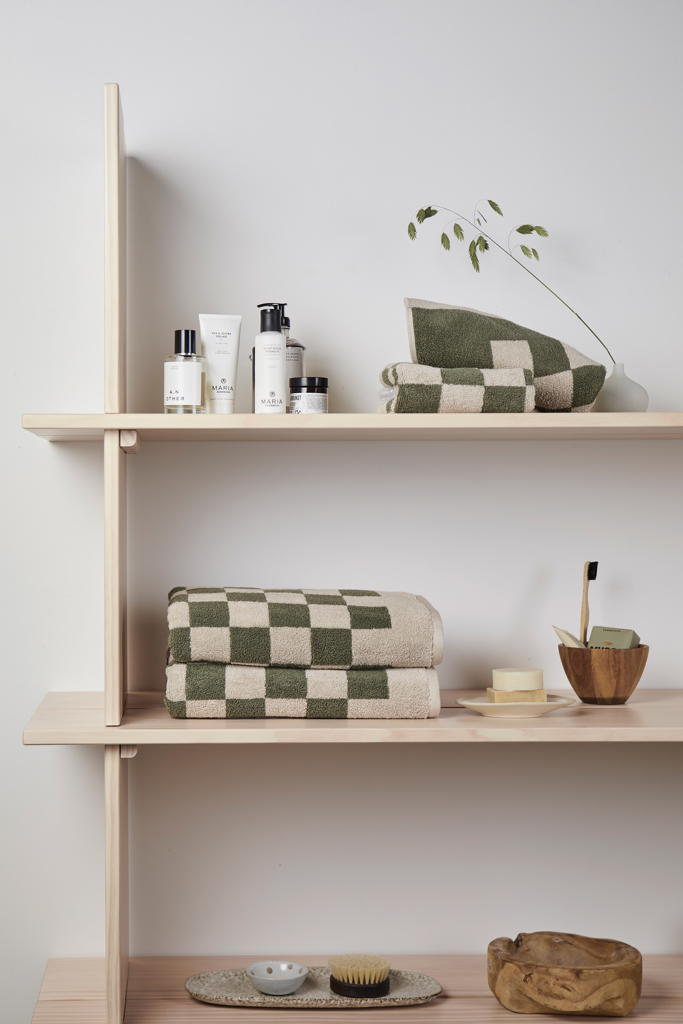 Sada ručníků se vzorem šachnovnice a plyšovou gramáží 500 g/m2 nabízejí dobrou savost a měkkost. Sada obsahuje dva ručníky o rozměru 135x165cm a dva menší praktické ručníky o rozměru 65x40cm. Každá sada je pečlivě zabalena v obalu s certifikací FSC®. Standard Organic Content Standard (OCS) se zaměřuje na organicky vypěstovaný materiál a sleduje jej od zdroje až po konečný produkt. Tento produkt obsahuje 99 % organické bavlny s certifikací OCS.