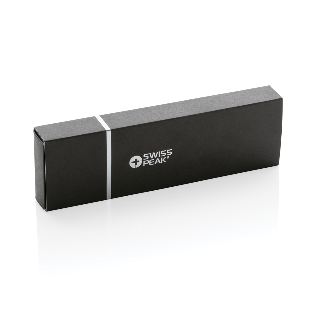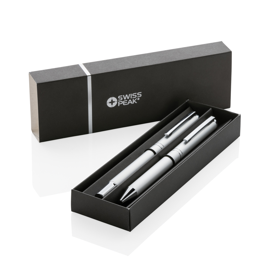 Sada per Cedar z kolekce Swiss Peak je perfektní kombinací moderního a elegantního stylu. Nejen, že skvěle vypadá, zároveň snižuje negativní dopad na životní prostředí. Obsahuje modrou náplň inkoustu Dokumental s garantovanou délkou psaní minimálně 1 200 m v případě kuličkového pera, a 400 m v případě rolleru. Vyrobená z RCS recyklovaného hliníku. RCS (Recycled Claim Standard) je globální standard, který umožňuje ověřit použití recyklovaného materiálu v produktu napříč celým dodavatelským řetězcem. Celkový podíl recyklátu dle váhy produktu: 17 %. Baleno v FSC® dárkovém obalu.