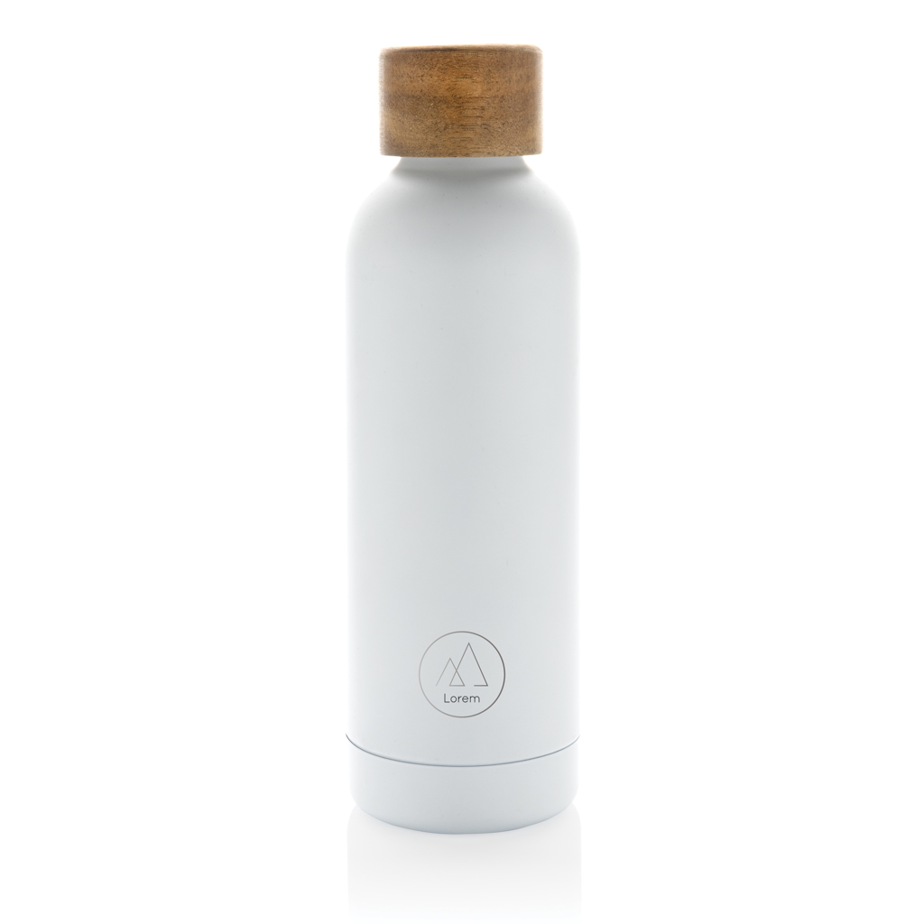 Termo lahev Wood s nerezerovou dvojitou stěnou a víčkem z akáciového dřeva. Nápoje uchová až 5 hodin horké a až 15 hodin studené. Vyrobená z RCS recyklovaných materiálů. RCS (Recycled Claim Standard) je globální standard, který umožňuje ověřit použití recyklovaného materiálu v produktu napříč celým dodavatelským řetězcem. Celkový podíl recyklátu dle váhy produktu: 88 %. Objem: 500 ml. Bez BPA. Baleno v kraftové dárkové krabičce.