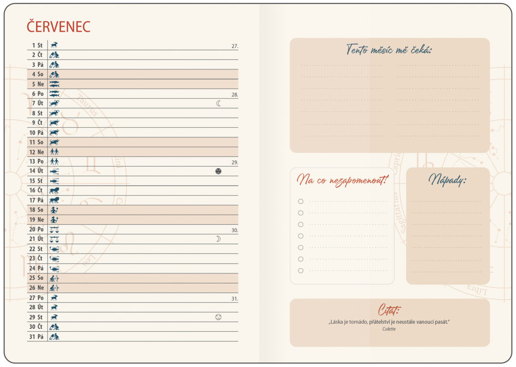 Týdenní diář B6 Lunární Dream s gumičkou - Vícebarevná