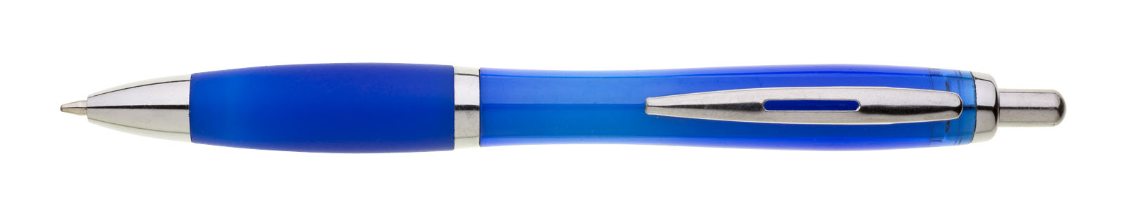 Oblíbené plastové propisovací pero ULTA s celobarevným, transperentním, modrým tělem. Barva pogumovaného úchopu je stejná jako tělo. Pero je zdobené stříbrným proužkem, ostatní doplňky jsou také stříbrné. Náplň je velkoobsahová, modře píšící. Kolekce EVER